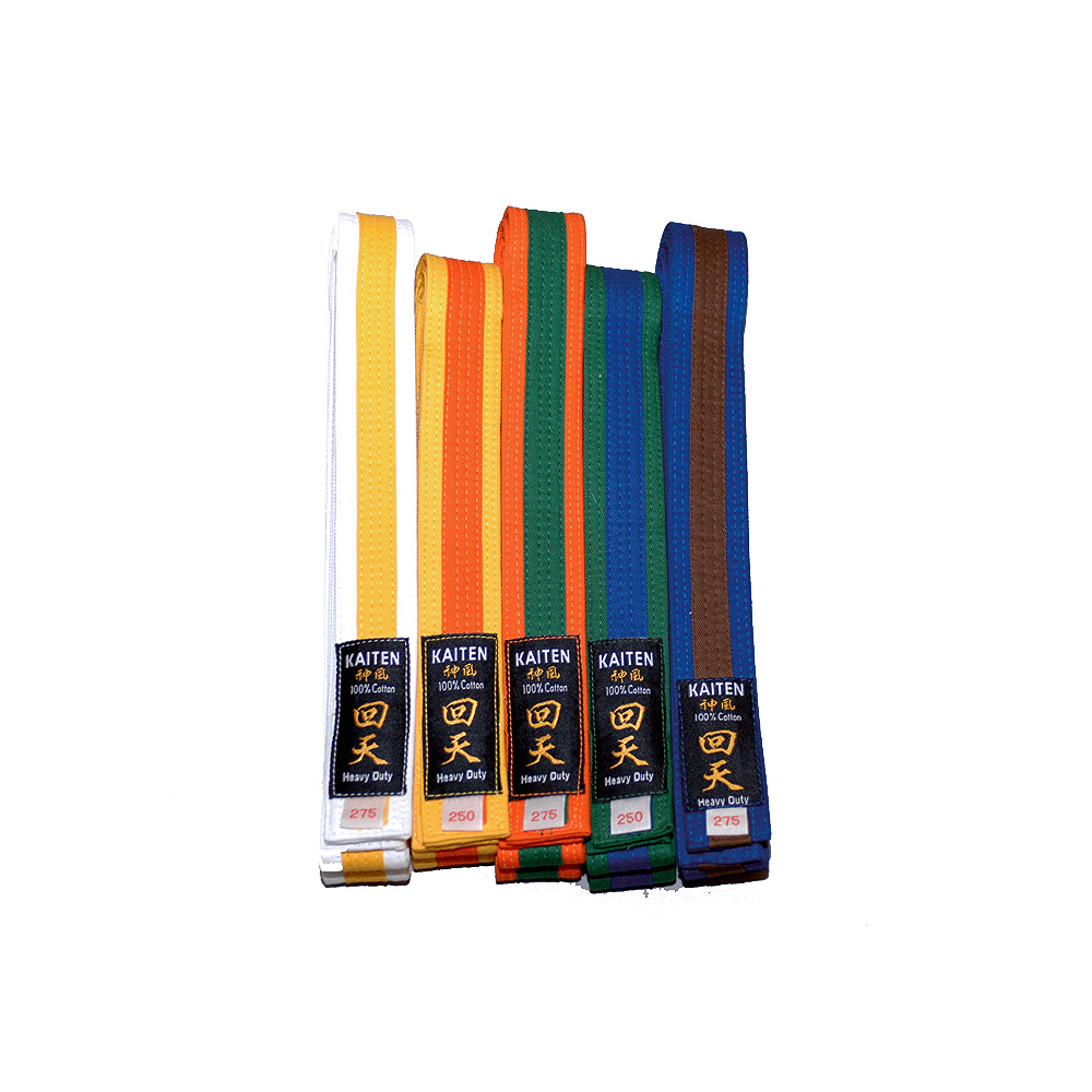Banden in de kleuren: wit/geel, geel/oranje, oranje/groen, groen/blauw en blauw/bruin.