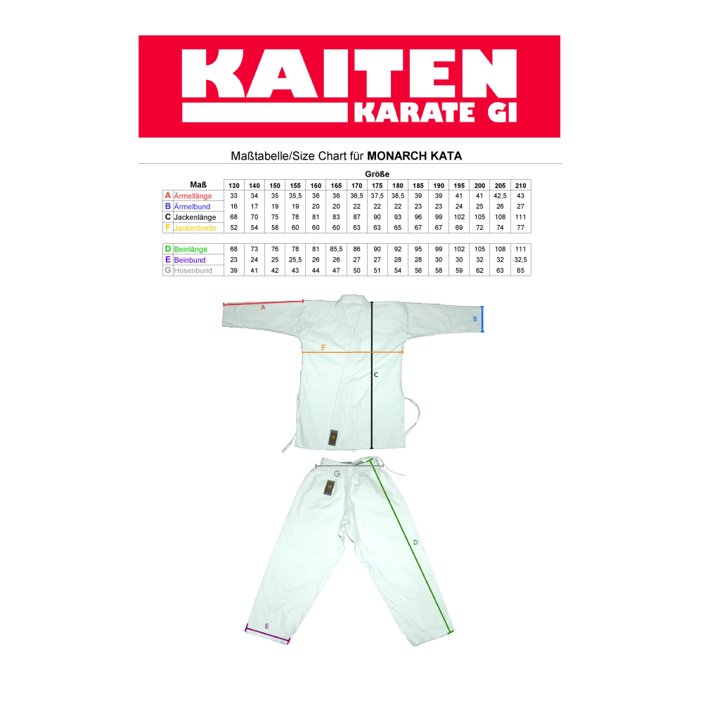Absolute top. De fijnste katoen van de hoogste kwaliteit maken de briljant geweven Monarch tot een top product. Alleen de allerbeste kleermakers mochten aan dit pak werken. Verwacht een hoog comfort wanner je dit pak draagt. De droom van de kata meesters. 160 t/m 210 cm in stappen van 5 cm.
